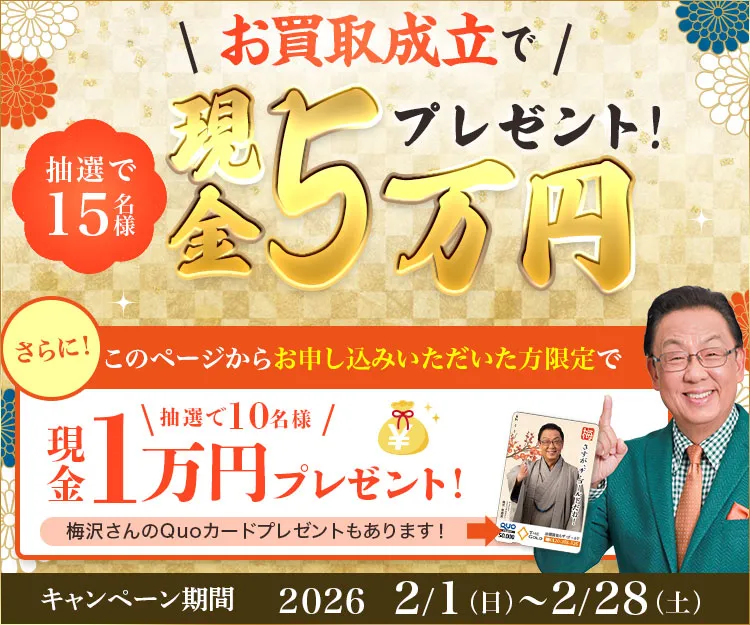 今ならなんと、2月28日までに査定依頼をすると、抽選で15名様に現金5万円が当たるキャンペーン実施中です!